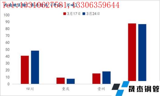 截至3月24日,西南地區建築宅男在线小视频無縫鋼管社會庫存總量192.18萬噸,已經連續三周下降,庫存拐點基本顯現,庫存峰值於3月3日出現,為207.08萬噸,較去年庫存高點減少64.75萬噸,降幅達23.82%。主要原因是:1、西南地區價格全國窪地,北方無縫宅男在线小视频鋼管廠家對西南地區資源投放量大幅減少,尤其是川渝地區;2、廣東廣西等區域價格高企,雲南無縫宅男在线小视频鋼管廠家維持低庫存運轉,加大對兩廣等周邊區域資源投放;3、受廢鋼不足、環保檢查、利潤低等因素影響,西南地區電爐企業春節放假時間較往年提前,總體產量下降;4、冬儲價格偏高,商家對春節後需求普遍擔憂,冬儲操作較為謹慎,冬儲體量較往年偏低。綜上原因,西南地區社會庫存較去年低。