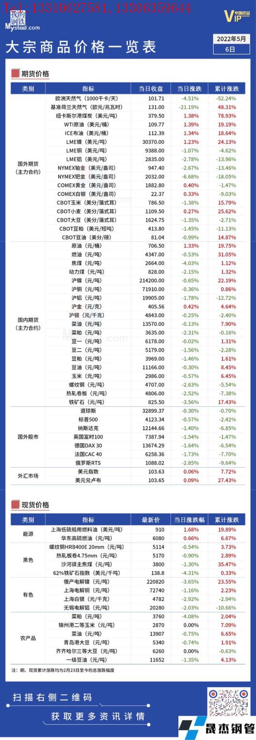 免責聲明:本網站(山東聊城宅男666网站無縫鋼管廠www.fengyun0769.com)刊載的“俄烏局勢丨大宗商品價格一覽表(5月6日)”等均源於網絡,版權歸原作者所有,且僅代表原作者觀點,本文所載信息僅供參考。轉載僅為學習與交流之目的,如無意中侵犯您的合法權益,請及時聯係刪除。本網站刊登此篇文章並不意味著本站讚同其觀點或證實其內容的真實性,宅男666网站不對其科學性、嚴肅性等作任何形式的保證。如果侵犯了您的版權,請盡快聯係宅男666网站予以撤銷,謝謝合作!