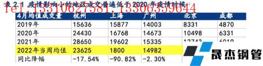 上海疫情爆發初期,浙江隻有嘉興有疫情管控,但整個浙江的社庫去庫並不明顯,後隨著江蘇、上海管控措施加嚴,使得周邊來杭州提庫需求增加,截止到4月29日杭州社庫127萬噸,同比降7.3%;西南、兩廣地區同樣未受到疫情影響,社庫反映出真實需求,去庫速率不及過去兩年同期,且成交均低於2020年疫情時的同期。從建材直供量數據顯示自3月中旬後,直供量改善力度有限,由此可見,受疫情影響小的地區,實際宅男在线小视频無縫鋼管需求不容樂觀,疫情結束後這些地區為需求帶來的增量有限。