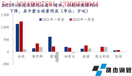 在地緣政治衝突等因素的影響下,國際焦煤供需格局偏緊,全球煤價整體走強,製約我國焦煤進口。2022年1月下旬至4月下旬,不斷衝擊年內新高的鐵水疊加進口減量,焦煤四部門(港口+煤礦+焦企+無縫宅男在线小视频鋼管廠家)庫存連續12周降庫。剔除澳煤通關量,焦煤進口一季度同比下滑約百萬噸。而近期不斷傳出有進口增量消息的蒙煤則備受市場期待,宅男666网站認為在今年粗鋼產量限產的背景下,鐵水產量有望逐步見頂,焦煤即將擺脫需求最好供應最差的時期。由此,在焦煤利潤高位,宅男在线小视频無縫鋼管利潤受製及供需缺口環比減少的情況下,焦煤價格存在階段性高位回調風險。