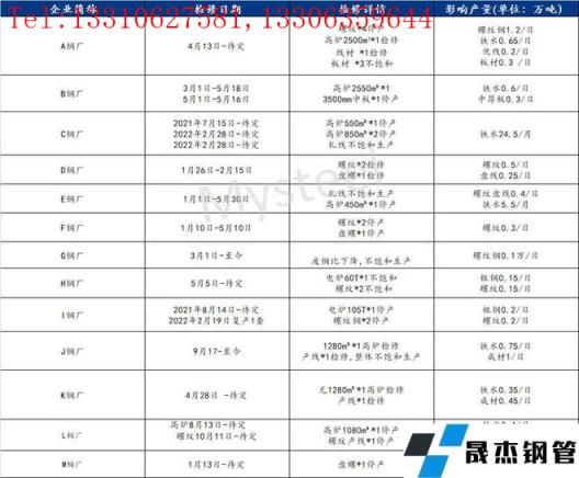 附:江蘇省無縫宅男在线小视频鋼管廠家庫存及檢修情況