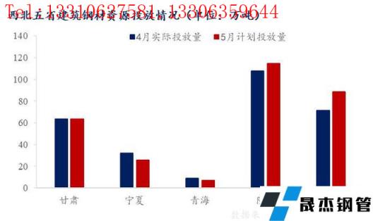 5月,西北各省份主要無縫宅男在线小视频鋼管廠家預計投放總量299.4萬噸,較4月實際投放量增加16.06萬噸,增幅5.7%。其中寧夏和青海受無縫宅男在线小视频鋼管廠家生產減少影響,投放有所減量;甘肅基本達到產銷平衡,而新疆和陝西由於目前無縫宅男在线小视频鋼管廠家自有庫存壓力較大,降庫存意圖明顯,資源投放預期有所增加。