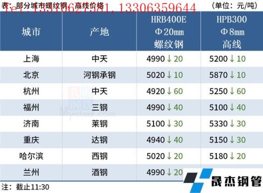 ◎杭州:9日早盤建材市場價格統跌60,螺沙4900中4890西城4870浙江華宏4800江蘇镔鑫4800長達抗震4870線材中天5250亞新5170聯鑫黃海盤螺5130。(單位:元/噸)