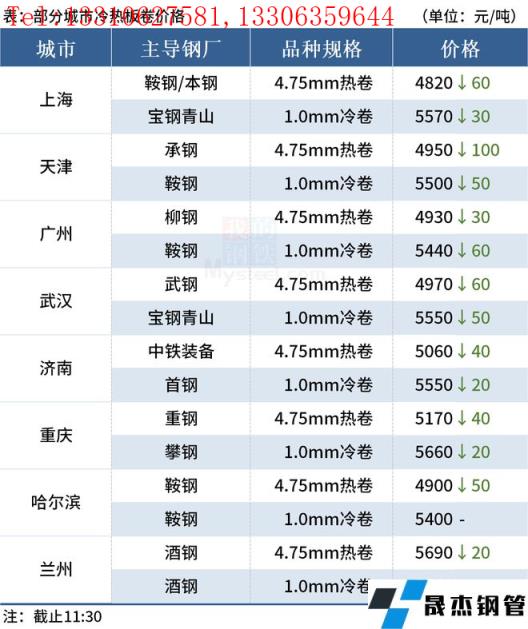 ◎樂從:9日早盤熱卷市場價格下跌30,4.75以上普柳燕4930-4940,2.75普5130-5200錳5110-5130。(單位:元/噸)