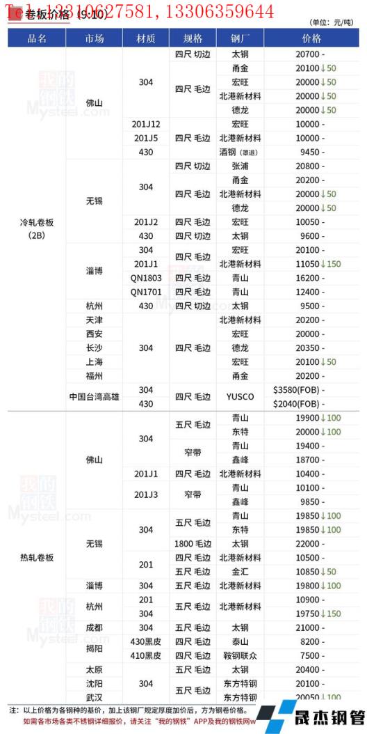 受期貨盤走弱影響,5月10日早間佛山、無錫兩大主流不鏽鋼現貨交易市場304冷熱軋均小幅下調50-100元/噸。目前佛山市場304熱軋五尺主流價格19800-20000元/噸,304冷軋民營毛邊基價主流在19900-20000元/噸。無錫市場304冷軋民營四尺毛邊基價主流20000元/噸,熱軋五尺毛邊報至19850元/噸。
