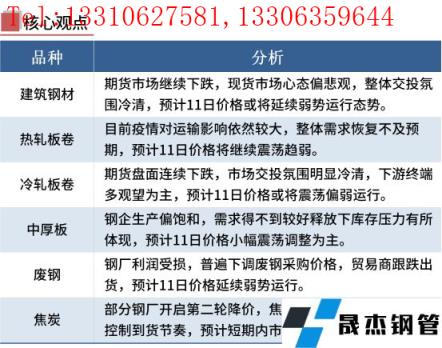熱軋板卷:5月10日,全國24個主要城市4.75mm熱軋板卷均價5012元/噸,較上個交易日下跌55元/噸。受昨日夜盤影響,現貨市場早盤開始,貿易商悲觀情緒濃厚,午後盤麵尾盤有小幅拉升,華東區域現貨價格也隨之小幅回調,但成交寥寥無幾。整體來看,國內目前疫情對運輸影響依然較大,華東區域解封仍需一段時間,整體需求恢複不及預期,預計11日熱卷現貨市場價格將繼續震蕩趨弱。
