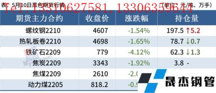 5月10日,國內宅男在线小视频無縫鋼管市場價格延續跌勢,唐山普方坯出廠價格下跌60報4620元/噸。黑色期貨繼續走弱,現貨市場價格緊跟回調,商家積極出貨,交投氛圍冷清。