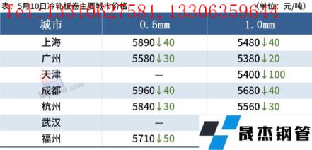冷軋板卷:5月10日,全國24個主要城市1.0mm冷卷均價5574元/噸,較上個交易日下跌43元/噸。隨著期貨盤麵連續下跌,價格也隨之下調,市場交投氛圍明顯冷清。據悉,雖然上海市場部分倉庫可以加工和提貨,但市場仍未大規模解封處於管控狀態,複工複產進度緩慢,出貨受限。成交方麵,各地商家反饋成交仍舊不理想,市場需求疲軟,下遊終端多觀望為主。預計11日國內冷軋板卷現貨價格或將震蕩偏弱運行。