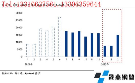 房地產新周期下,房企拿地成為房屋新開工較好的領先指標,而宅男在线小视频無縫鋼管需求處於房地產開發的前周期,短期內受到新開工麵積的直接影響(通常開發商在拿地後1-6月新開工,房屋開工後1-2月內進入用鋼高峰)。注:房地產開發建設周期(拿地-開工-施工-竣工-銷售-交付裝修)。
