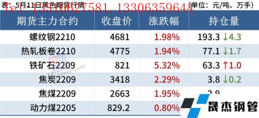 焦炭:5月11日,焦炭市場偏弱運行,焦炭市場全麵落實第二輪降價,累計降幅為400元/噸。焦企前期焦化利潤修複,產地開工多提升至高位,焦炭供應相對有保證,即產即銷,多以積極出貨為主。無縫宅男在线小视频鋼管廠家方麵,無縫宅男在线小视频鋼管廠家開工仍在高位,剛需仍在,無縫宅男在线小视频鋼管廠家多有意控製到貨節奏。焦煤方麵,前期降價後出貨仍不佳,部分煤礦庫存累積,今日山西焦煤價格下跌100-250元/噸,焦炭成本支撐開始下行,預計短期內焦炭市場偏弱運行。