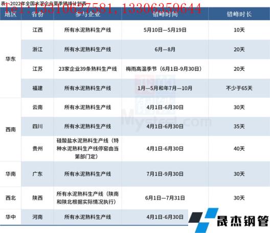 其中,貴州省水泥工業協會在延長2022年二季度錯峰生產停窯的通知中表示,由於原燃材料價格大幅上漲、下遊需求持續低迷、企業庫存持續高位,二季度每條生產線在錯峰生產停窯40天基礎上再增加5天錯峰生產停窯時間。全國水泥企業夏季錯峰計劃具體情況如下: