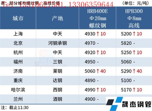 ◎杭州:12日早盤建材市場價格上漲10,螺沙4900中4890西城4870浙江華宏4800江蘇镔鑫4800長達抗震4870線材中天5250亞新5170聯鑫黃海盤螺5130。(單位:元/噸)