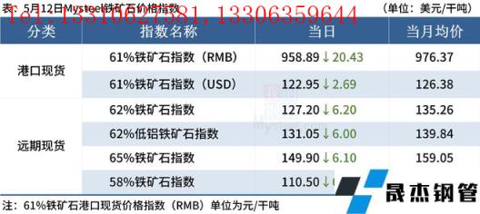 2022年05月13日早讀:中鐵協呼籲錳企減產,62%鐵礦石指數跌破130美元