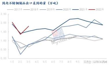 海關數據顯示,2020年之前中國大陸出口美國的不鏽鋼製品的量在1萬噸/月左右,受疫情、當地供應下降、家庭補貼等因素影響,2020年下半年開始該量逐步放大。