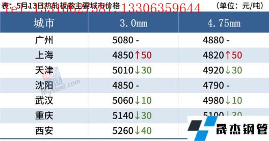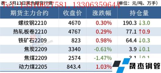 熱軋板卷:5月13日,全國24個主要城市4.75mm熱軋板卷均價5021元/噸,較上個交易日下跌14元/噸。現貨市場觀望情緒較濃,早盤漲跌互現,隨著午盤期貨走強,貿易商挺價情緒尚可,但成交並沒有好轉。目前從供需麵來看,熱卷基本麵依舊偏差,昨日本網熱軋板卷數據發布,產量、社庫增加,廠庫下降,表需稍有回升。需求方麵由於近期期貨盤麵反彈,數據有所回升,前期部分延遲需求逐步釋放,商家壓力有所減輕。綜合來看,預計近期全國熱軋板卷價格區間震蕩運行。