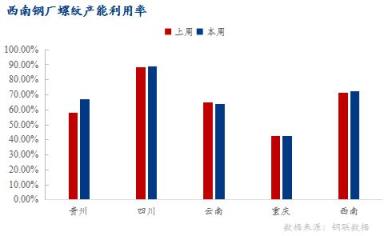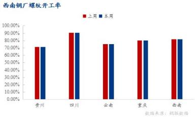 重慶區域:本周重慶無縫宅男在线小视频鋼管廠家生產無明顯變化,螺紋鋼產能利用率42.52%,開工率80%,周產量4.55萬噸,環比持平。