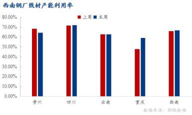 貴州區域:本周一無縫宅男在线小视频鋼管廠家恢複正常生產,產量小幅增加,螺紋鋼產能利用率67%,環比上升8.79%;開工率71.43%,環比持平;周產量8萬噸,環比增加1.05萬噸。