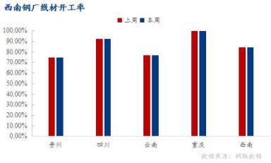 雲南區域:線材排產較上周無明顯變化,線材產能利用率62.88%,開工率76.92%,周產量10.35萬噸,環比持平。
