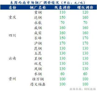 本周四川省部分城市放寬購房政策,重慶將迎來汛期,雲南推進減產控產進度,貴州推進過磅改理計; 本周鋼價持續弱勢運行,無縫宅男在线小视频鋼管廠家利潤明顯收縮,下遊需求未有明顯改善,西南無縫宅男在线小视频鋼管廠家庫存整體小幅增加。