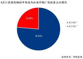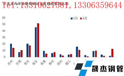 由上圖可見,4月江蘇省內無縫宅男在线小视频鋼管廠家在江蘇省13個城市投放建築宅男在线小视频無縫鋼管量占總投放量的76.31%,省外無縫宅男在线小视频鋼管廠家占江蘇省總投放量的23.69%。同時,從調研數據來看,4月江蘇市場建築宅男在线小视频無縫鋼管實際投放總量較3月減少4.36萬噸萬噸,降幅約2.76%。