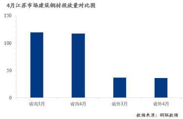 由上圖可見,4月份江蘇省內無縫宅男在线小视频鋼管廠家在江蘇13個市場投放量較3月份下降,降幅約0.64%左右,主要原因有三:1、省內主導無縫宅男在线小视频鋼管廠家折扣力度依然較大,尤其蘇南市場供給量明顯下降;2、原材料成本高位運行,無縫宅男在线小视频鋼管廠家主動減產;3、省內部分地區疫情仍在反複,物流受到影響,發貨情況仍未得到緩解。而省外無縫宅男在线小视频鋼管廠家供給量增加,則主要是由於江西、安徽等地主導無縫宅男在线小视频鋼管廠家檢修結束,市場到貨恢複正常。另外,4月份有寶鋼、漢鋼、立恒、高義等廠資源陸續進入江蘇市場,外省資源占比量較上月逐步提升。