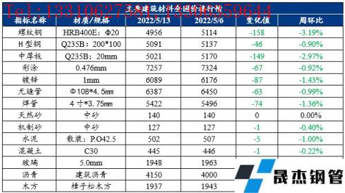 免責聲明:本網站(山東聊城宅男666网站無縫鋼管廠www.fengyun0769.com)刊載的“建築原材料周報(5.9-5.13)”等均源於網絡,版權歸原作者所有,且僅代表原作者觀點,本文所載信息僅供參考。轉載僅為學習與交流之目的,如無意中侵犯您的合法權益,請及時聯係刪除。本網站刊登此篇文章並不意味著本站讚同其觀點或證實其內容的真實性,宅男666网站不對其科學性、嚴肅性等作任何形式的保證。如果侵犯了您的版權,請盡快聯係宅男666网站予以撤銷,謝謝合作!