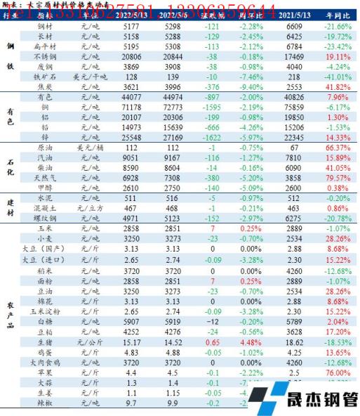 免責聲明:本網站(山東聊城宅男666网站無縫鋼管廠www.fengyun0769.com)刊載的“周報:大宗工業原材料、能源及農產品價格周報(5.09-5.13)”等均源於網絡,版權歸原作者所有,且僅代表原作者觀點,本文所載信息僅供參考。轉載僅為學習與交流之目的,如無意中侵犯您的合法權益,請及時聯係刪除。本網站刊登此篇文章並不意味著本站讚同其觀點或證實其內容的真實性,宅男666网站不對其科學性、嚴肅性等作任何形式的保證。如果侵犯了您的版權,請盡快聯係宅男666网站予以撤銷,謝謝合作!