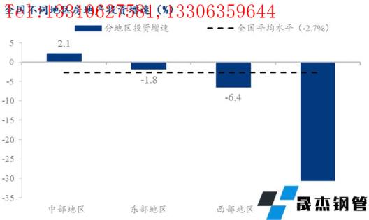 分區域來看,中部地區地產投資表現最好,累計同比仍維持著2.1%的正增長,其次為東部地區,同比降幅僅1.8%,二者降幅均明顯低於全國平均水平。西部地區及東北地區投資降幅明顯高於其他地區,降幅分別達到6.4%和30.5%。反映房地產企業投資的謹慎度明顯上升,投資集中在市場較為成熟的東部及中部地區,對於經濟不發達的地區投資額明顯下滑。但值得注意的是,這或將導致市場投機情緒升溫。