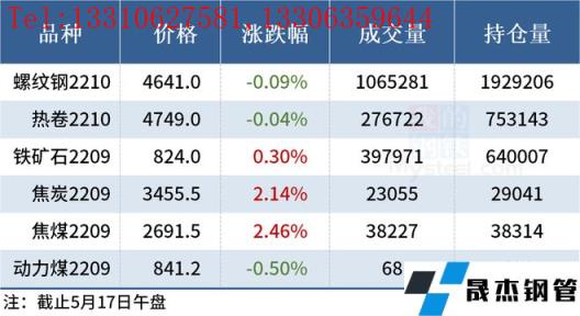 2022年05月17日午報:鋼價漲跌互現,“雙焦”期貨漲逾2%