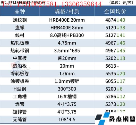 建築宅男在线小视频無縫鋼管:5月18日,全國31個主要城市20mm三級抗震螺紋鋼均價4874元/噸,較上個交易日跌40元/噸。早盤期螺弱勢不改,國內建築宅男在线小视频無縫鋼管價格整體繼續下跌。短期來看,期貨盤麵大幅下行,鋼坯價格再次回落,市場情緒整體偏弱,加之近期受疫情、雨水天氣影響需求較差,預計19日國內建築宅男在线小视频無縫鋼管價格繼續延續弱勢運行態勢。