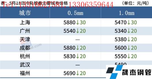冷軋板卷:5月18日,全國24個主要城市1.0mm冷卷均價5535元/噸,較上個交易日持下跌20元/噸。黑色係期貨盤麵整體震蕩下行,市場交投氛圍較為冷清,午後部分地區二次下調價格。據悉,西南市場汽車芯片短缺現象仍然存在,導致市場需求有所滯後,下遊采購意願偏弱;而華南市場受疫情影響,部分零部件遲遲未到貨,下遊加工廠生產積極性較低,市場需求持續疲軟。綜合來看,預計19日國內冷軋板卷現貨價格或將繼續偏弱運行。