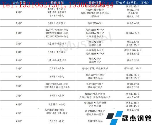 江蘇無縫宅男在线小视频鋼管廠家本周影響產量小幅增加,共計13家無縫宅男在线小视频鋼管廠家非正常生產,較上周檢修停產鋼企數量持平,目前鐵水影響產量較上周減少0.3萬噸 /日,粗鋼影響產量較上周持平 ,成材影響產量減少0.24萬噸 /日。目前廢鋼資源緊缺,短期難以緩解,大部分電弧爐廠利潤出現虧損,宅男在线小视频無縫鋼管價格如若繼續下跌,後期將觸發電弧爐產量縮減。具體情況及各主要品種日均影響產量(單位:萬噸)詳見下表:
