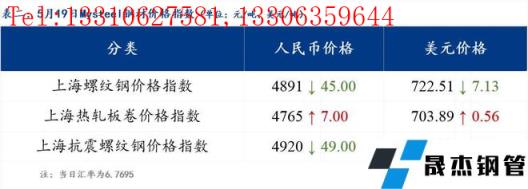 分地區方麵,上海螺紋鋼價格指數4891,下跌45.0;上海熱軋板卷價格指數4765,上漲7.0。(單位:元/噸)