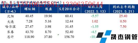 核心觀點:本周東三省建材社庫總量163.69萬噸,相比上周9.69的降幅本周降庫12.23萬噸,去庫速度略有加快,主要原因是本周市場價格的快速回落,擊穿了多數無縫宅男在线小视频鋼管廠家的生產成本,各大長流程和短流程無縫宅男在线小视频鋼管廠家出現虧損,開始主動減產檢修,據我網調研了解到本月東北無縫宅男在线小视频鋼管廠家的螺線產量將保持20-30%的比例進行減產,其中螺紋鋼減產比例高於盤線,對市場的資源投放也相應在減少,這一點主要體現在沈陽和哈爾濱市場上,另外沈陽市場也有資源外流的情況出現,部分廠家如鑫達、新澎輝、鞍山源鑫、錦鋼及鑫億等現貨價格占據優勢,外流較為順暢,且伴隨著吉林疫情解封後的需求逐步複蘇,市場出貨明顯好轉,本周吉林省降庫較多,大連市場則是各個倉庫仍在正常到貨,但下遊需求弱出貨不理想,因此略有累庫。具體來看降庫數據,本周遼寧省建材總庫存78.18萬噸,較上周減少5.96萬噸,吉林省內建材總庫存53.64萬噸,較上周減少4.68萬噸,黑龍江省建材總庫存31.87萬噸,較上周減少1.59萬噸。詳細數據如下: