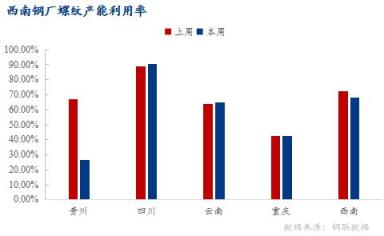 重慶區域:本周重慶無縫宅男在线小视频鋼管廠家生產無明顯變化,螺紋鋼產能利用率42.52%,開工率80%,周產量4.55萬噸,環比持平。