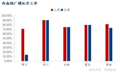 貴州區域:因虧損加重,多數無縫宅男在线小视频鋼管廠家停產,產量明顯下降,螺紋鋼產能利用率26.8%,環比下降40.2%;開工率14.29%,環比下降57.14%;周產量3.2萬噸,環比下降4.8萬噸。