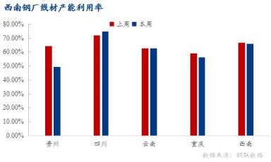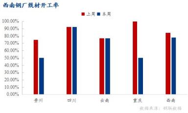 重慶區域:一無縫宅男在线小视频鋼管廠家因坯料不足,短期停產,線材產能利用率56.36%,環比下降2.89%;開工率50%,環比下降50%;周產量1.95萬噸,環比減少0.1萬噸。