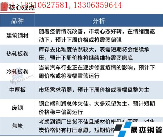 宏觀麵,今日央行宣布5年期LPR下調,也意味著個人住房貸款利率最低可達首套房4.25%,利好房地產市場。產業麵,調研85家獨立電弧爐無縫宅男在线小视频鋼管廠家平均虧損86元/噸,本周電爐廠減產力度明顯加大,高爐廠鐵水產量變化不大。本周鋼市成交量大起大落,體現需求不穩定,市場信心不足。短期鋼價漲跌反複,處於震蕩築底階段,隨著國內疫情防控形勢進一步好轉,預計國內經濟逐步複蘇,鋼市供需壓力逐步緩解,中期來看有望呈現震蕩反彈行情。
