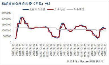 5月25日福建省建材總庫存合計103.48萬噸,與上周相比增加2.28萬噸,其中閩東46.25萬噸、閩南48.55萬噸、閩西北8.68萬噸。