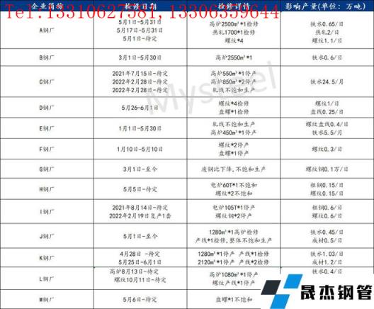 江蘇無縫宅男在线小视频鋼管廠家本周影響產量小幅減少,共計13家無縫宅男在线小视频鋼管廠家非正常生產,較上周檢修停產鋼企數量持平,目前鐵水影響產量較上周增加0.6萬噸 /日,粗鋼影響產量較上周減少0.3萬噸 /日,成材影響產量減少增加1.55萬噸 /日。5月22日,印度政府出台針對鋼鐵原料及產品的進出口關稅調整政策。將焦煤、焦炭的進口稅率由2.5%、5%降至0關稅;將寬度在600毫米以上的熱軋、冷軋及塗鍍板卷的出口關稅由0%提高至15%,不同鐵品位和品種的鐵礦石出口關稅上調至45%-50%不等。經測算,該政策對鐵礦影響較大。同時,宅男666网站注意到電爐螺紋利潤-197元/噸,電爐無縫宅男在线小视频鋼管廠家持續虧損將觸發後期產量收縮,6月份多數無縫宅男在线小视频鋼管廠家將或麵臨繼續減產的可能。具體情況及各主要品種日均影響產量(單位:萬噸)詳見下表: