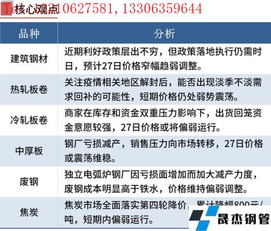 建築宅男在线小视频無縫鋼管:5月26日,全國31個主要城市20mm三級抗震螺紋鋼均價4744元/噸,較上個交易日下跌22元/噸。受現貨持續回落,本周無縫宅男在线小视频鋼管廠家減產範圍擴大,螺紋鋼產量小幅下降,廠庫小幅上升,但社庫持續下降,表觀消費小幅回落。短期來看,盡管近期利好政策層出不窮,但政策落地執行仍需時日。目前市場情緒依然偏空,短期仍然需要進一步提振市場消費信心及投資信心。因此預計27日國內建築宅男在线小视频無縫鋼管價格或將繼續窄幅趨弱調整為主。