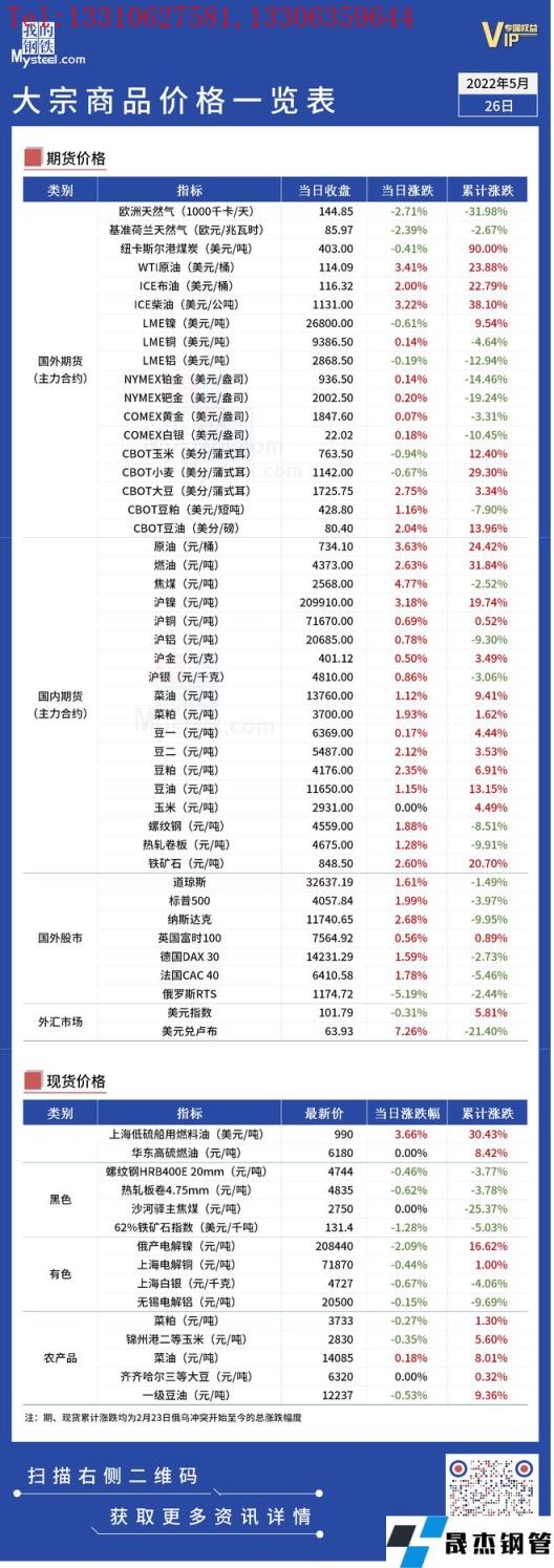 免責聲明:本網站(山東聊城宅男666网站無縫鋼管廠www.fengyun0769.com)刊載的“俄烏局勢丨大宗商品價格一覽表(5月26日)”等均源於網絡,版權歸原作者所有,且僅代表原作者觀點,本文所載信息僅供參考。轉載僅為學習與交流之目的,如無意中侵犯您的合法權益,請及時聯係刪除。本網站刊登此篇文章並不意味著本站讚同其觀點或證實其內容的真實性,宅男666网站不對其科學性、嚴肅性等作任何形式的保證。如果侵犯了您的版權,請盡快聯係宅男666网站予以撤銷,謝謝合作!