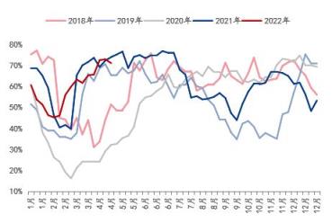 結合相應的產能利用率來看,截止至2022年4月底,湖北省螺紋鋼產能利用率約在71.22%,高於近5年的每年平均水平,且從走勢圖上看,基本處於曆年產能釋放值的高位運行;而線盤產能利用率約在67.54%,尚且低於平均值水平,從走勢圖上看,並未達到峰值水平在釋放。由此看來,隨著新增產能的釋放,若產能利用率維持在相對高位運行,將一定程度上在供應方麵做了疊加效應。當然,供應能力的單方麵增加並未能說明價格一定會出現偏低運行的表現,因此需結合需求的表現來驗證一下。