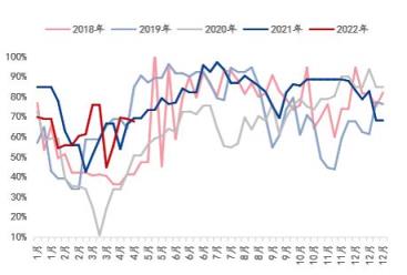 圖3:湖北省建材無縫宅男在线小视频鋼管廠家螺紋鋼產能利用率(單位:%)