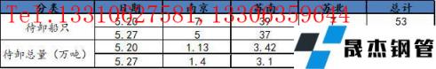 此次調研選取了南京、蘇州、無錫、常州、南通、徐州、揚州、鹽城八個城市,以建築宅男在线小视频無縫鋼管為主要庫存的20家倉庫。通過匯總了解,當前樣本倉庫碼頭累計待卸船隻總計48隻,待卸總量達5.47萬噸。