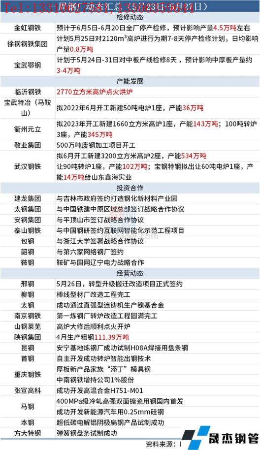 據不完全統計,本周(5月23日-5月27日)有3家無縫宅男在线小视频鋼管廠家發布檢修計劃,具體如下: