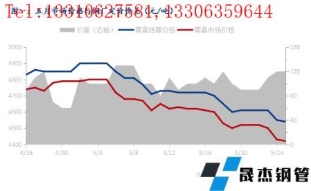 5月份南昌建築宅男在线小视频無縫鋼管市場價格一路下行,具體來看,4月26日至5月25日期間南昌建築宅男在线小视频無縫鋼管現貨市場最高價格為4800元/噸,最低價格為4420元/噸,較上月最高價與最低價分別下降70元/噸和300元/噸,期間市場價格單邊下行振幅為380元/噸。