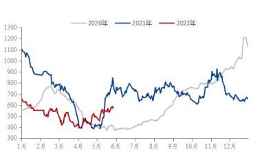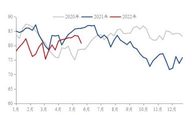 首先,供給端方麵,據調研顯示,截至2022年5月27日,37家熱軋板卷生產企業中,無縫宅男在线小视频鋼管廠家產能利用率為80.87%,能夠從圖2可以觀察到2022年1-5月份,熱軋產能利用率是低於2021年同期水平,因此無縫宅男在线小视频鋼管廠家熱軋產量給到市場的供給壓力是在持續減弱,對於熱軋價格起到了一定的支撐作用。再來看下無縫宅男在线小视频鋼管廠家的冷軋產能利用率, 2020年與2021年冷軋產能利用率均值分別為77.96%與81.05%。截至2022年5月27日,29家冷軋板卷生產企業中,冷軋產能利用率為83.04%,從年同比數據對比之下,能夠反映出冷軋產能利用率已經達到相對飽和狀態。