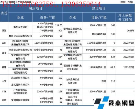 據不完全統計,5月國內8家無縫宅男在线小视频鋼管廠家發布鋼鐵產能置換方案。其中,涉及新建煉鋼產能623.5萬噸,新建煉鐵產能864萬噸;涉及淘汰煉鋼產能798萬噸,淘汰煉鐵產能946.53萬噸。