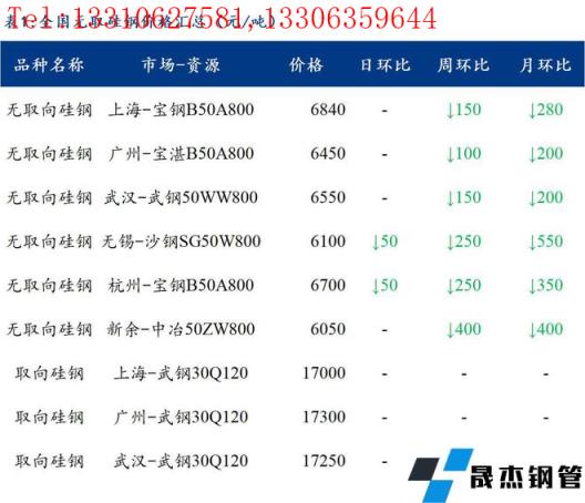 無錫市場:無錫無取向矽鋼價格跌50元/噸,800係寶鋼6850元/噸、武鋼6550元/噸、沙鋼6100元/噸、鞍鋼6300元/噸,市場成交偏弱。據商戶反饋,近期來國內鋼市震蕩下行,市場預期偏悲觀,電機下遊行業接單情況偏差,多觀望為主;另外當地貿易商多暗降拋貨為主,且多倒掛嚴重,更多關注近期無縫宅男在线小视频鋼管廠家調價政策以及無縫宅男在线小视频鋼管廠家追補情況。綜合來看,預計明日無錫市場矽鋼現貨多震蕩趨弱運行